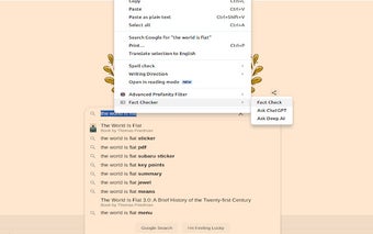 O Fact Checker é uma extensão para o navegador Chrome que transforma a experiência de navegação ao permitir a busca, filtragem e exibição de conteúdo da web de forma eficiente. Ideal para quem realiza pesquisas ou checagem de fatos, a ferramenta oferece funcionalidades como recuperação instantânea de conteúdo, filtragem inteligente e uma interface amigável em forma de lightbox, permitindo que o usuário leia as informações sem distrações. Além disso, a extensão se integra facilmente ao menu de contexto, proporcionando acesso rápido com um simples clique direito.